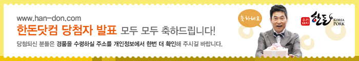 선정되신 분들에게는 개별적으로 연락을 드리며, 맛있는 <한돈 3kg>을 회원님 댁으로 직접 보내드리겠습니다.